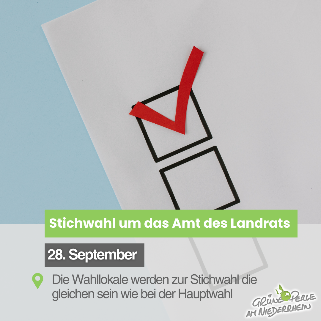 Die Gemeinde Sonsbeck bedankt sich bei allen Wahlhelferinnen und Wahlhelfern, die es ermöglicht haben, die Hauptwahl am 14.09.2025 erfolgreich durchzuführen. Das amtliche Endergebnis wurde am 16.09.2025 durch den Wahlausschuss festgestellt. Am 28.09.2025 wird es zur Stichwahl um das Amt des Landrats kommen. Alle Wählerinnen und Wähler, die bereits Briefwahlunterlagen für die Stichwahl angefordert haben, brauchen nichts weiter zu tun, denn die Briefwahlunterlagen werden voraussichtlich am Freitag, den 19.09.2025, durch die Gemeinde Sonsbeck verschickt. Aufgrund der kurzen Zeitspanne bis zur Stichwahl senden Sie die Unterlagen nach Erhalt bitte umgehend wieder an die Gemeinde Sonsbeck zurück oder geben Sie diese einfach direkt im Rathaus wieder ab.