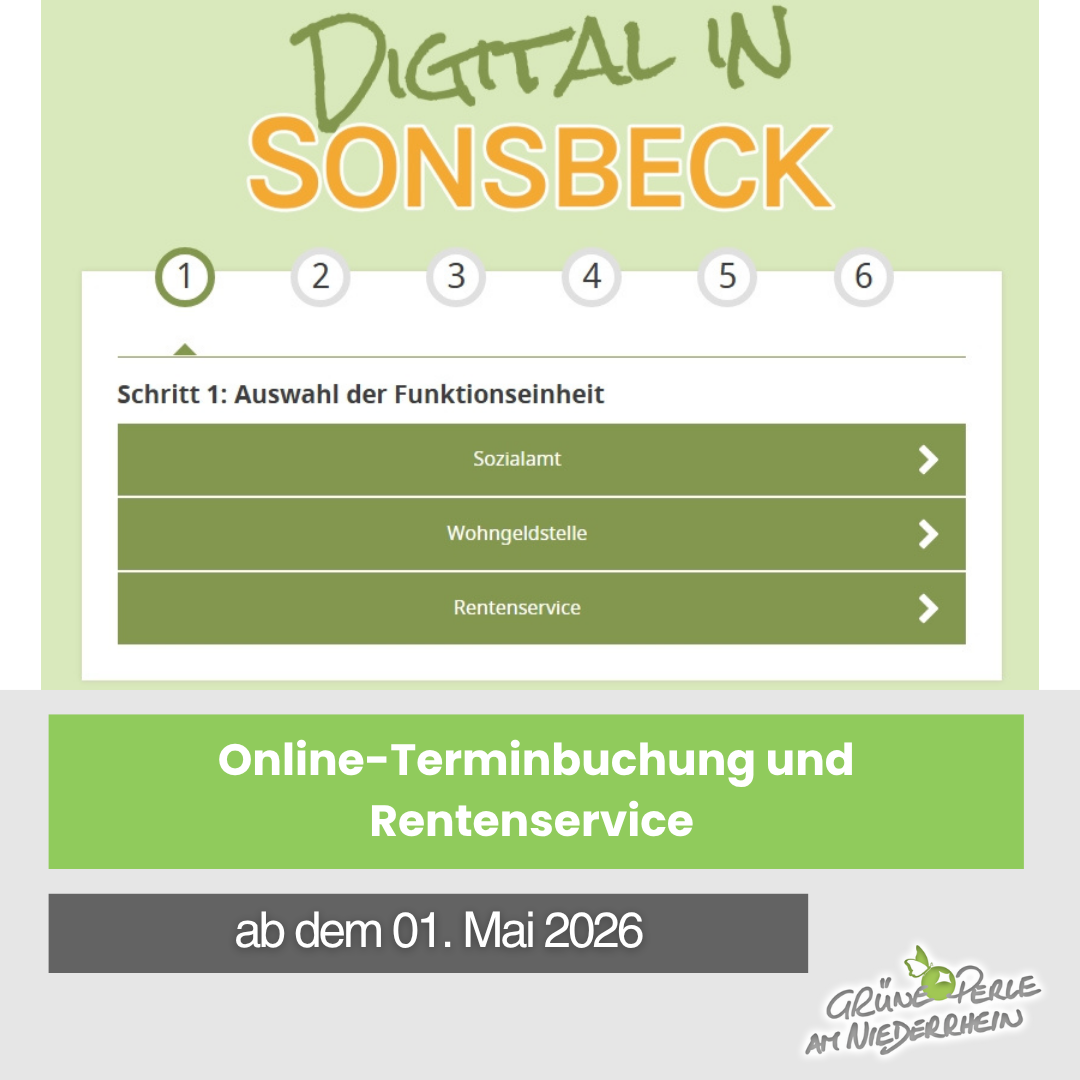 Mit dem neuen Angebot stärkt die Gemeinde Sonsbeck ihren Dienstleistungscharakter und verbessert die Unterstützung für die Bürgerinnen und Bürger. Die Verwaltung empfiehlt, nach Möglichkeit die Online-Terminbuchung zu nutzen, um Anliegen planbar zu klären und Wartezeiten zu vermeiden.