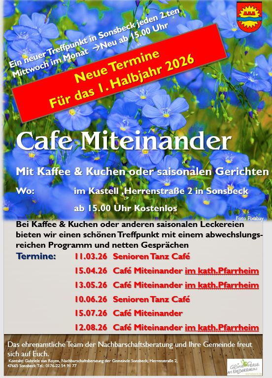 Café Miteinander schöner Treffpunkt mit abwechslungsreichem Programm und netten Gesprächen, Kaffee & Kuchen oder saisonale Leckereien.